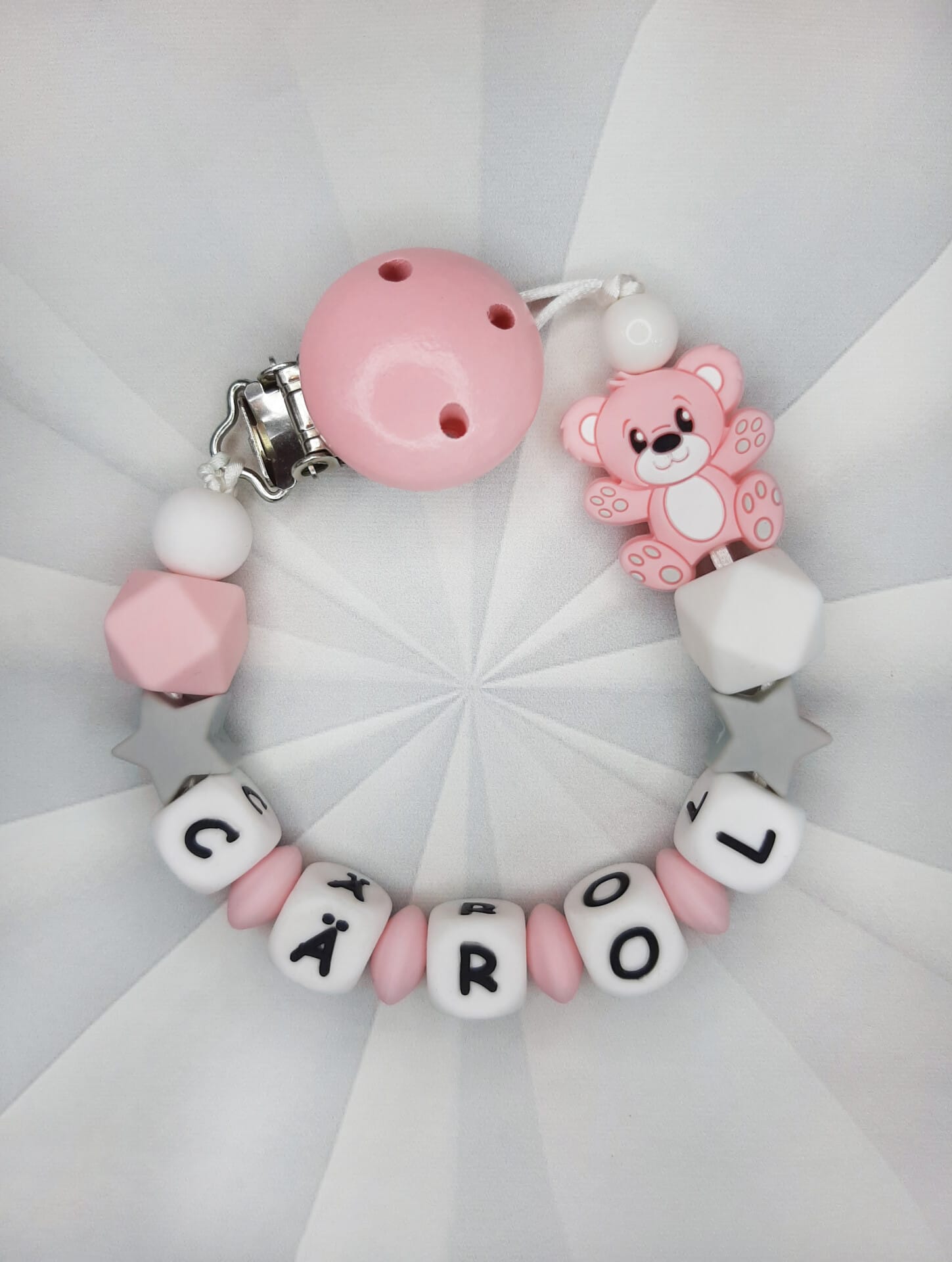 Palume arvestada, et mida pikem on lutiketile minev nimi, seda vähem ilupärleid saame lutiketi alguses ja lõpus kasutada. Vähem pärleid üldse mitte kadedusest, vaid seetõttu, et lutikett peab vastama standarditele, et olla beebile ohutu. Lutikettidele, mis sisaldavad rohkem kui 5 tähemärki, ei lisa me nimetähtede vahele tähti eraldavaid pärleid, kuna lutikett muutub muidu liiga pikaks ja lapsele ohtlikuks.
