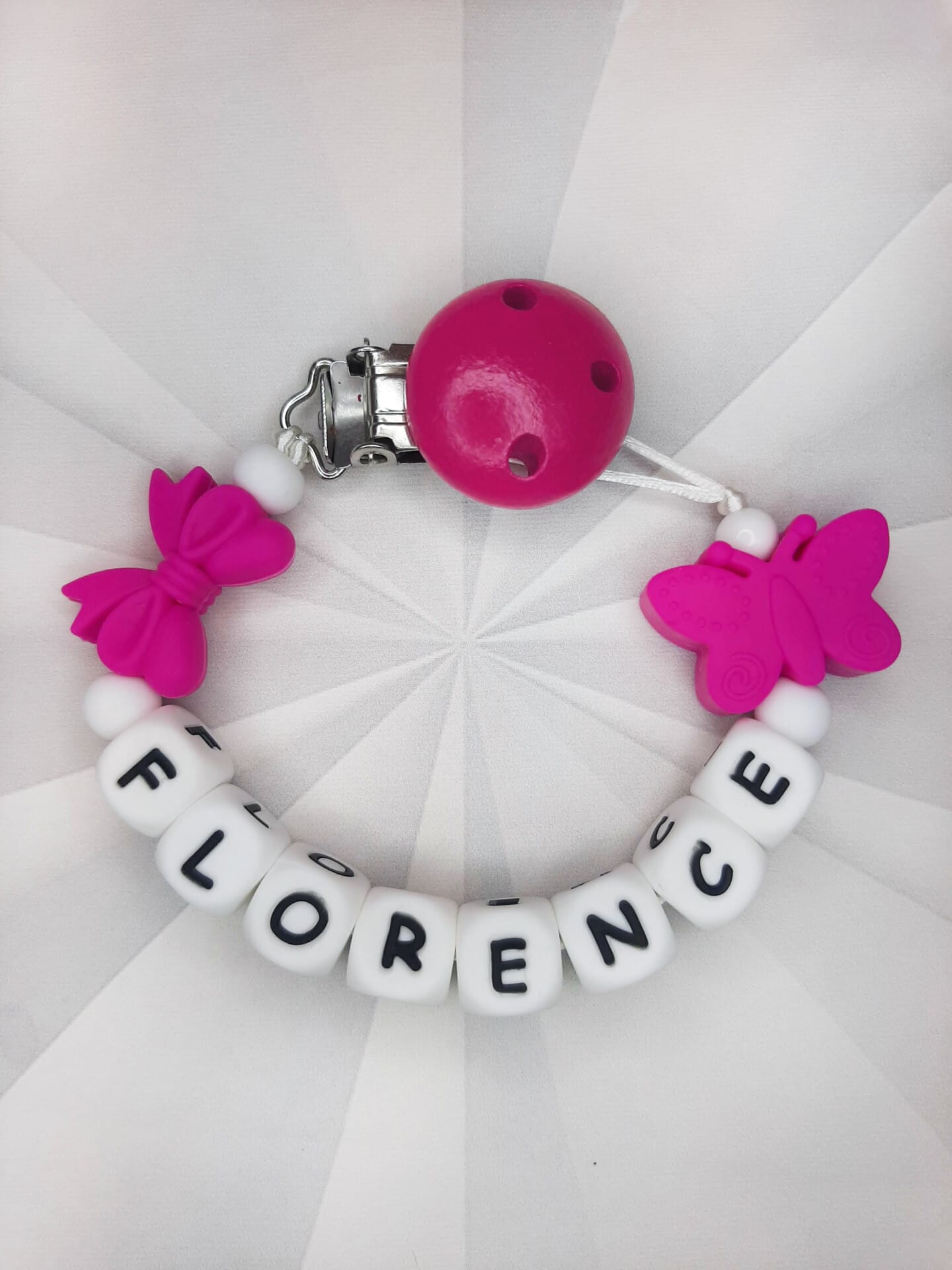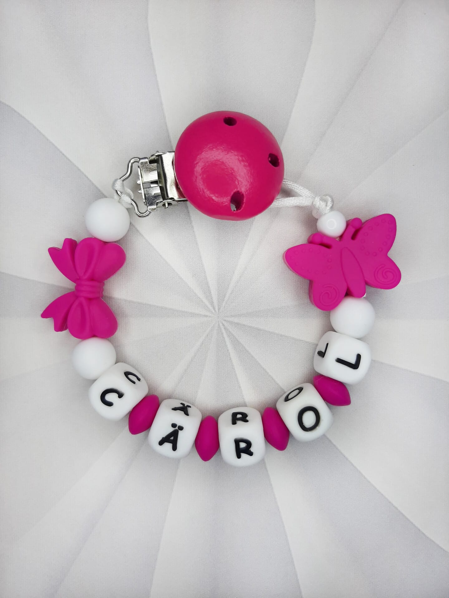 Palume arvestada, et mida pikem on lutiketile minev nimi, seda vähem ilupärleid saame lutiketi alguses ja lõpus kasutada. Vähem pärleid üldse mitte kadedusest, vaid seetõttu, et lutikett peab vastama standarditele, et olla beebile ohutu. Lutikettidele, mis sisaldavad rohkem kui 5 tähemärki, ei lisa me nimetähtede vahele tähti eraldavaid pärleid, kuna lutikett muutub muidu liiga pikaks ja lapsele ohtlikuks.