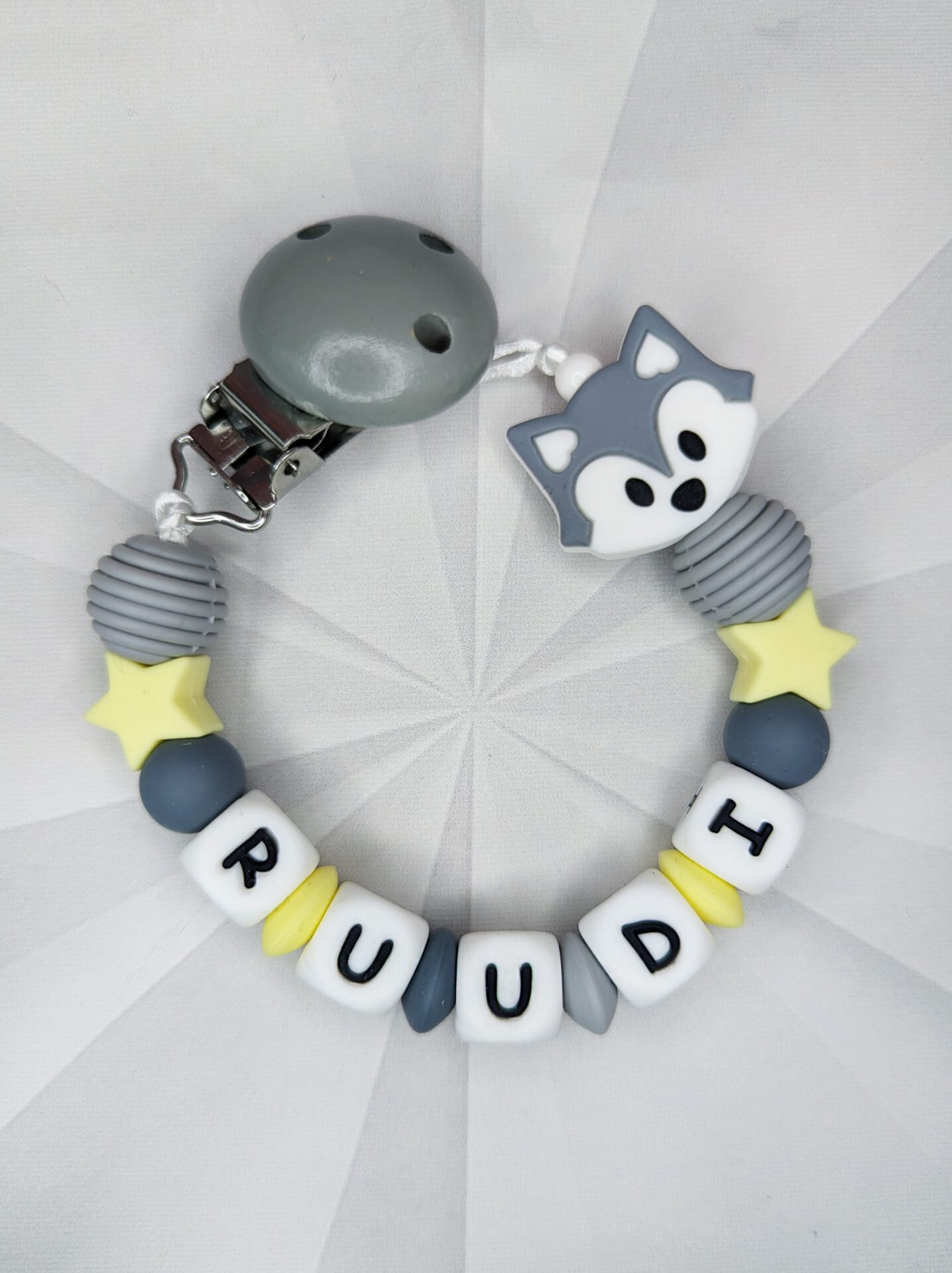 Palume arvestada, et mida pikem on lutiketile minev nimi, seda vähem ilupärleid saame lutiketi alguses ja lõpus kasutada. Vähem pärleid üldse mitte kadedusest, vaid seetõttu, et lutikett peab vastama standarditele, et olla beebile ohutu. Lutikettidele, mis sisaldavad rohkem kui 5 tähemärki, ei lisa me nimetähtede vahele tähti eraldavaid pärleid, kuna lutikett muutub muidu liiga pikaks ja lapsele ohtlikuks.