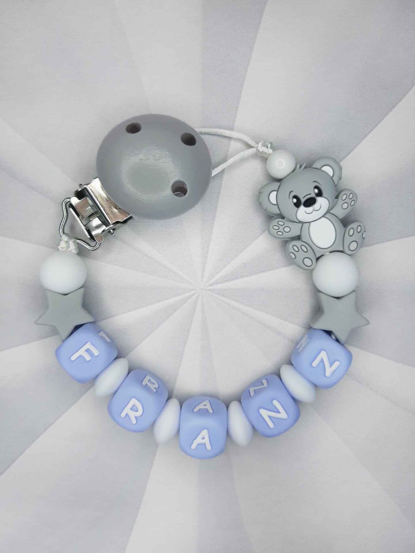 Palume arvestada, et mida pikem on lutiketile minev nimi, seda vähem ilupärleid saame lutiketi alguses ja lõpus kasutada. Vähem pärleid üldse mitte kadedusest, vaid seetõttu, et lutikett peab vastama standarditele, et olla beebile ohutu. Lutikettidele, mis sisaldavad rohkem kui 5 tähemärki, ei lisa me nimetähtede vahele tähti eraldavaid pärleid, kuna lutikett muutub muidu liiga pikaks ja lapsele ohtlikuks.