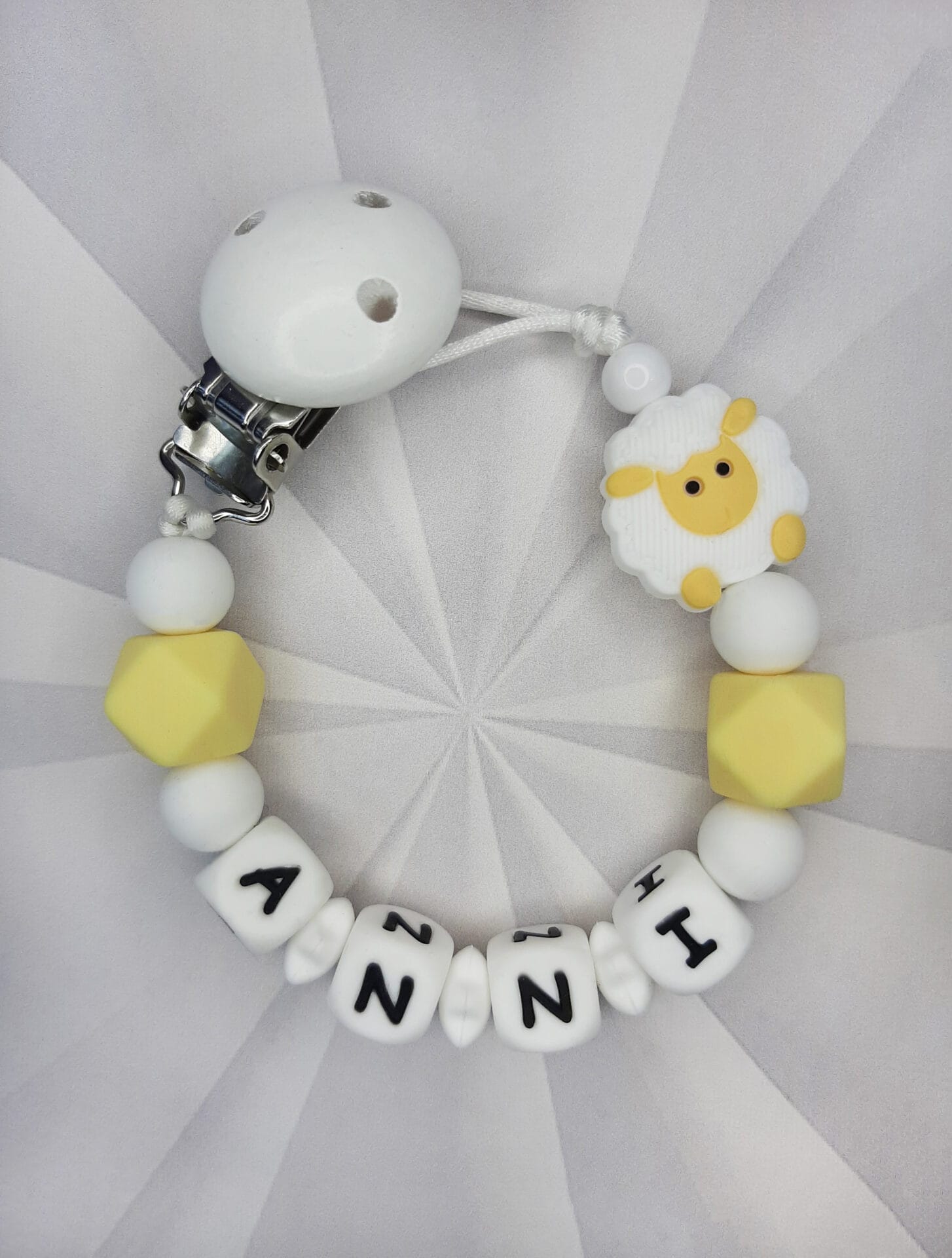 Palume arvestada, et mida pikem on lutiketile minev nimi, seda vähem ilupärleid saame lutiketi alguses ja lõpus kasutada. Vähem pärleid üldse mitte kadedusest, vaid seetõttu, et lutikett peab vastama standarditele, et olla beebile ohutu. Lutikettidele, mis sisaldavad rohkem kui 5 tähemärki, ei lisa me nimetähtede vahele tähti eraldavaid pärleid, kuna lutikett muutub muidu liiga pikaks ja lapsele ohtlikuks.