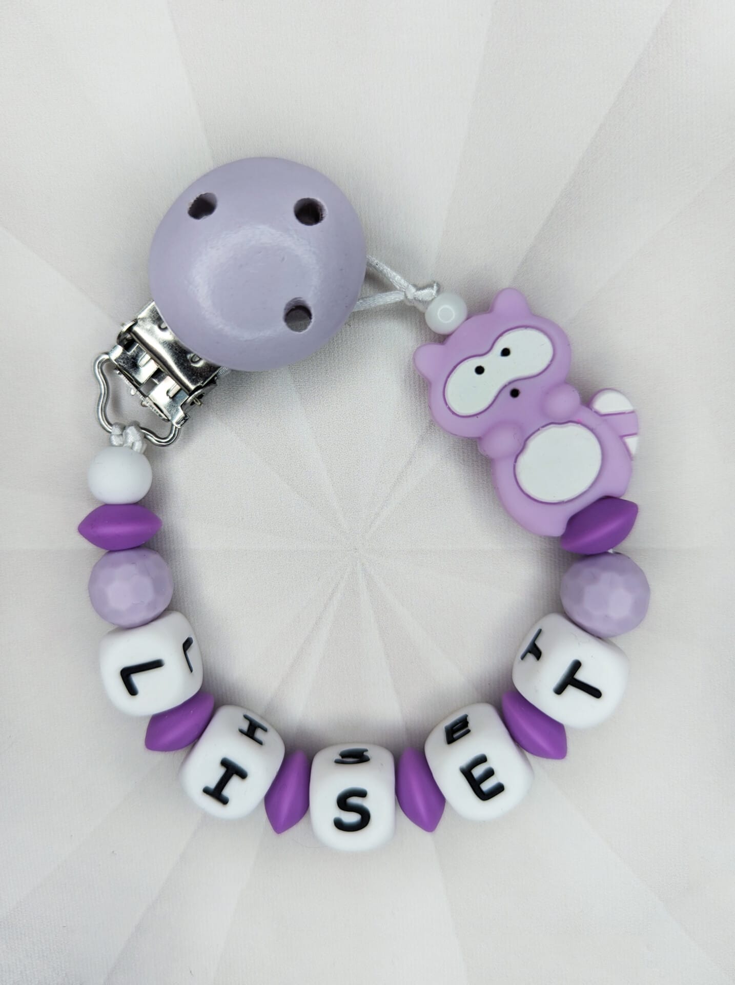 Palume arvestada, et mida pikem on lutiketile minev nimi, seda vähem ilupärleid saame lutiketi alguses ja lõpus kasutada. Vähem pärleid üldse mitte kadedusest, vaid seetõttu, et lutikett peab vastama standarditele, et olla beebile ohutu. Lutikettidele, mis sisaldavad rohkem kui 5 tähemärki, ei lisa me nimetähtede vahele tähti eraldavaid pärleid, kuna lutikett muutub muidu liiga pikaks ja lapsele ohtlikuks.