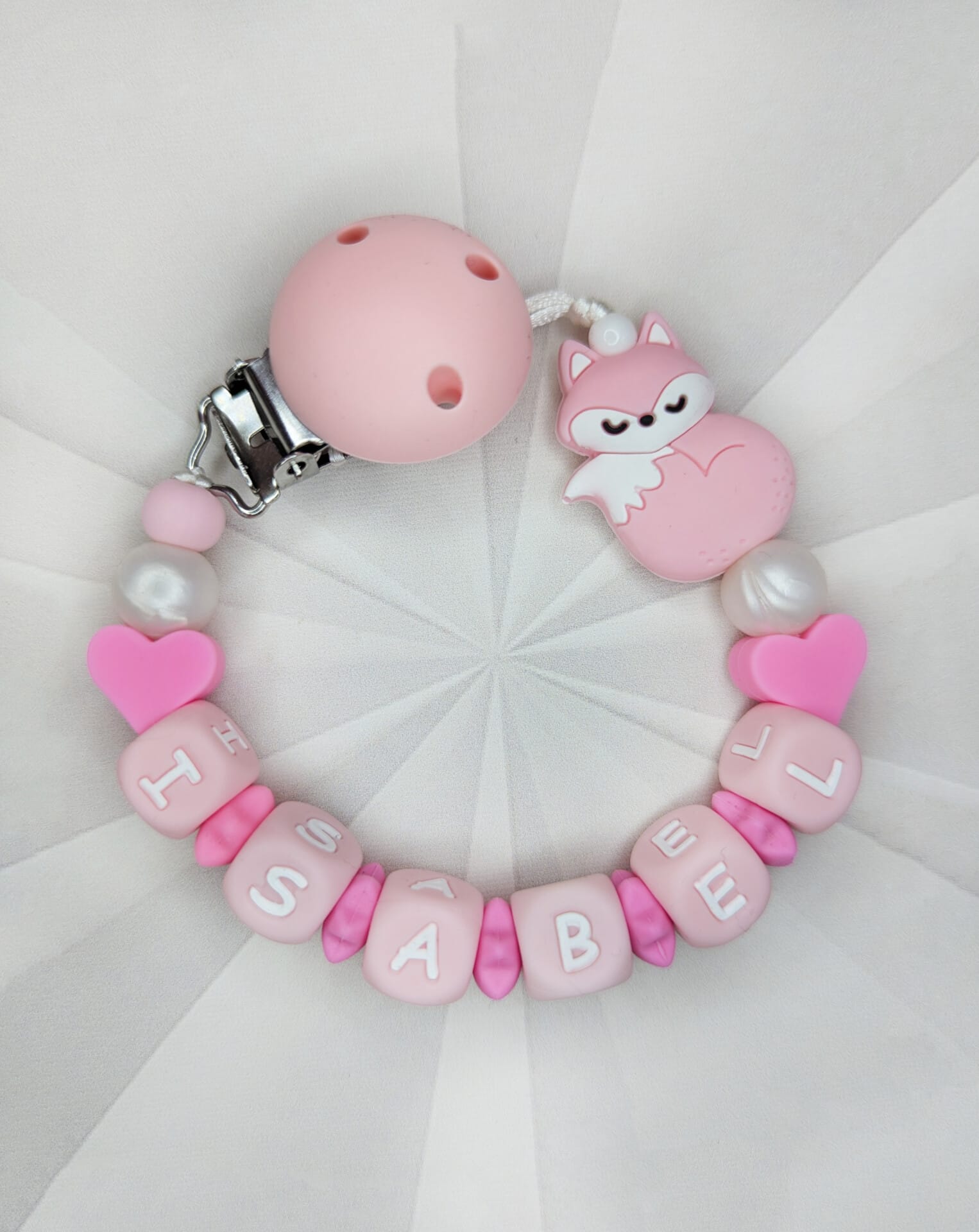 Palume arvestada, et mida pikem on lutiketile minev nimi, seda vähem ilupärleid saame lutiketi alguses ja lõpus kasutada. Vähem pärleid üldse mitte kadedusest, vaid seetõttu, et lutikett peab vastama standarditele, et olla beebile ohutu. Lutikettidele, mis sisaldavad rohkem kui 6 tähemärki, ei lisa me nimetähtede vahele tähti eraldavaid pärleid, kuna lutikett muutub muidu liiga pikaks ja lapsele ohtlikuks.