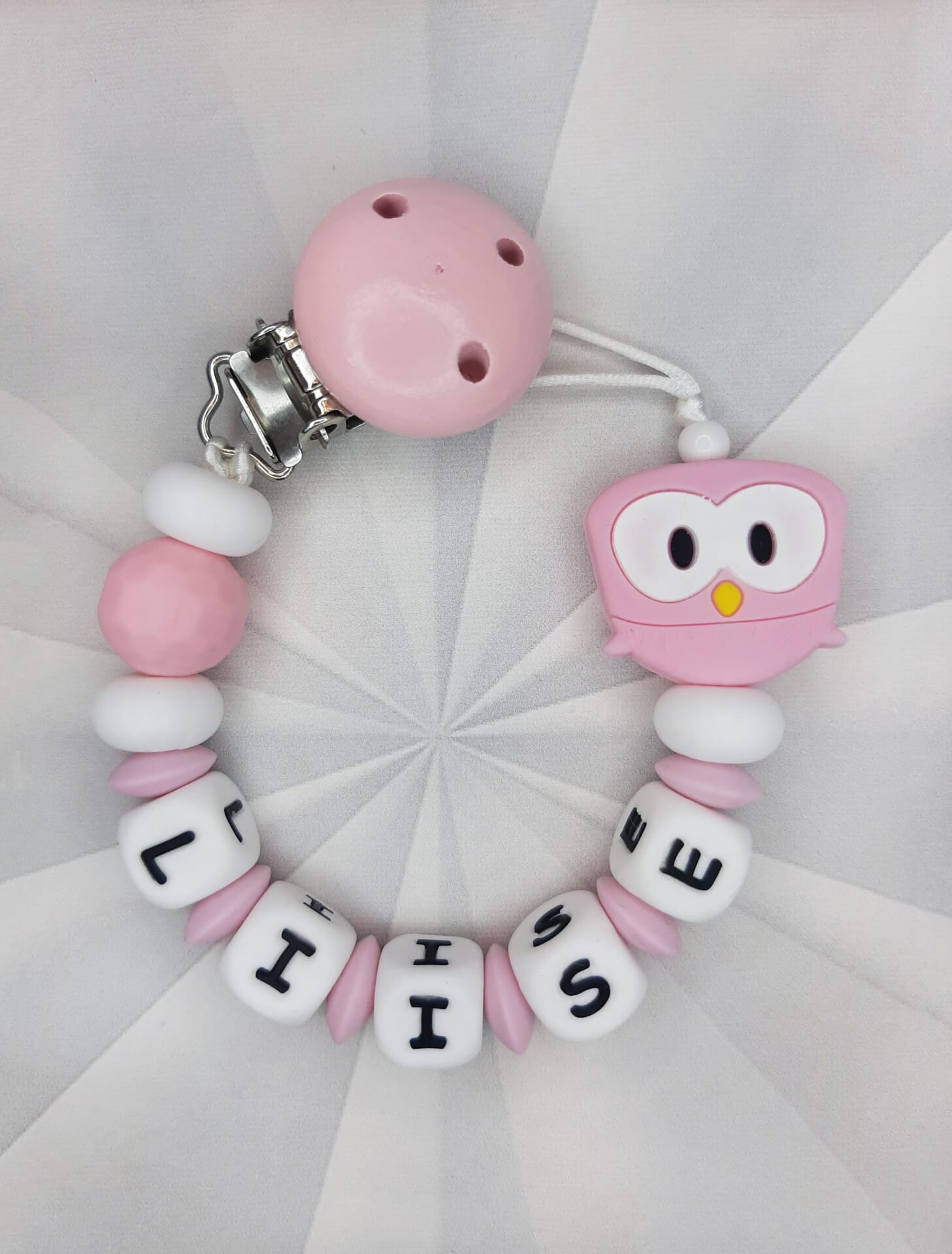 Palume arvestada, et mida pikem on lutiketile minev nimi, seda vähem ilupärleid saame lutiketi alguses ja lõpus kasutada. Vähem pärleid üldse mitte kadedusest, vaid seetõttu, et lutikett peab vastama standarditele, et olla beebile ohutu. Lutikettidele, mis sisaldavad rohkem kui 5 tähemärki, ei lisa me nimetähtede vahele tähti eraldavaid pärleid, kuna lutikett muutub muidu liiga pikaks ja lapsele ohtlikuks.