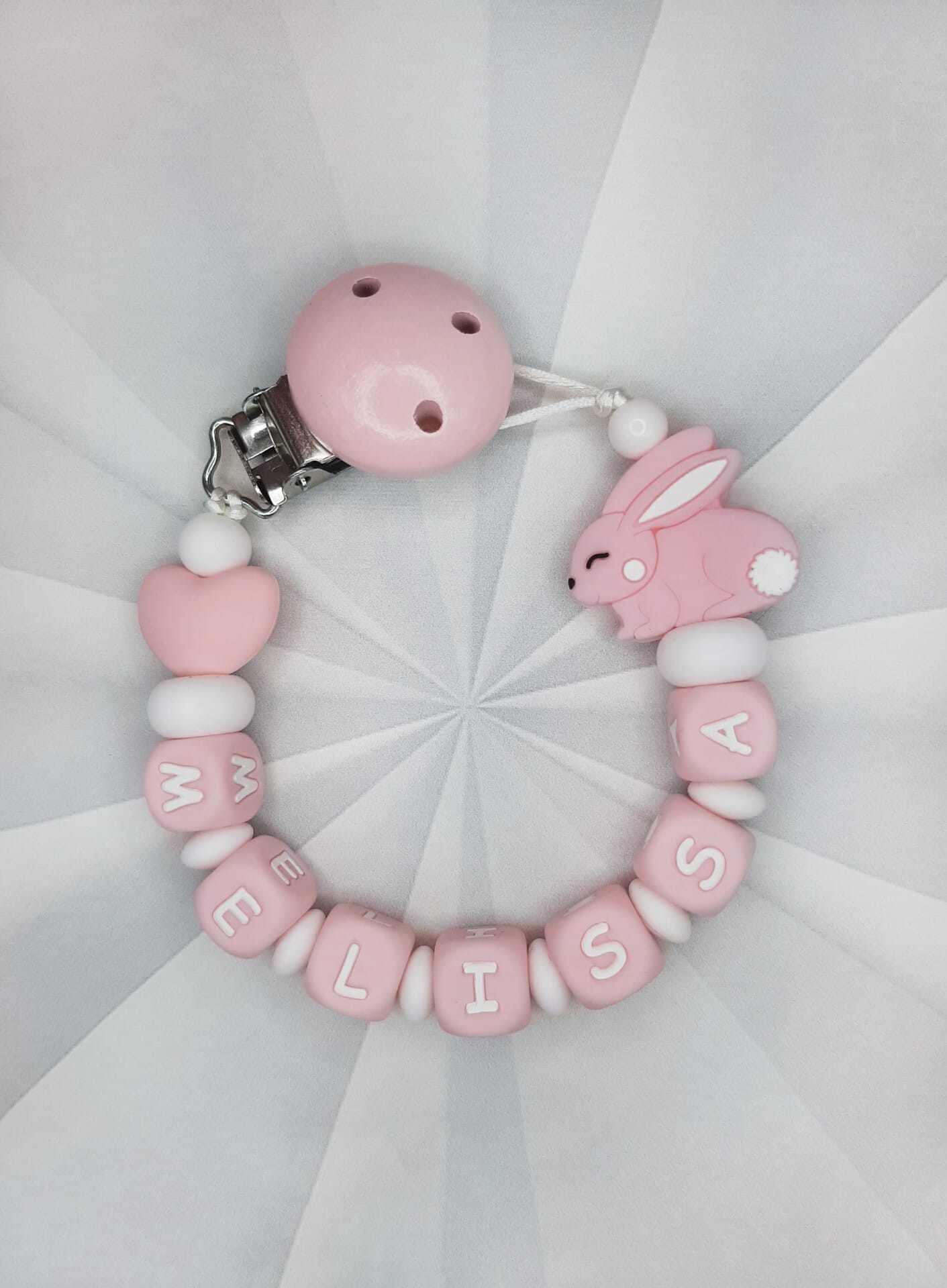 Palume arvestada, et mida pikem on lutiketile minev nimi, seda vähem ilupärleid saame lutiketi alguses ja lõpus kasutada. Vähem pärleid üldse mitte kadedusest, vaid seetõttu, et lutikett peab vastama standarditele, et olla beebile ohutu. Lutikettidele, mis sisaldavad rohkem kui 7 tähemärki, ei lisa me nimetähtede vahele tähti eraldavaid pärleid, kuna lutikett muutub muidu liiga pikaks ja lapsele ohtlikuks.