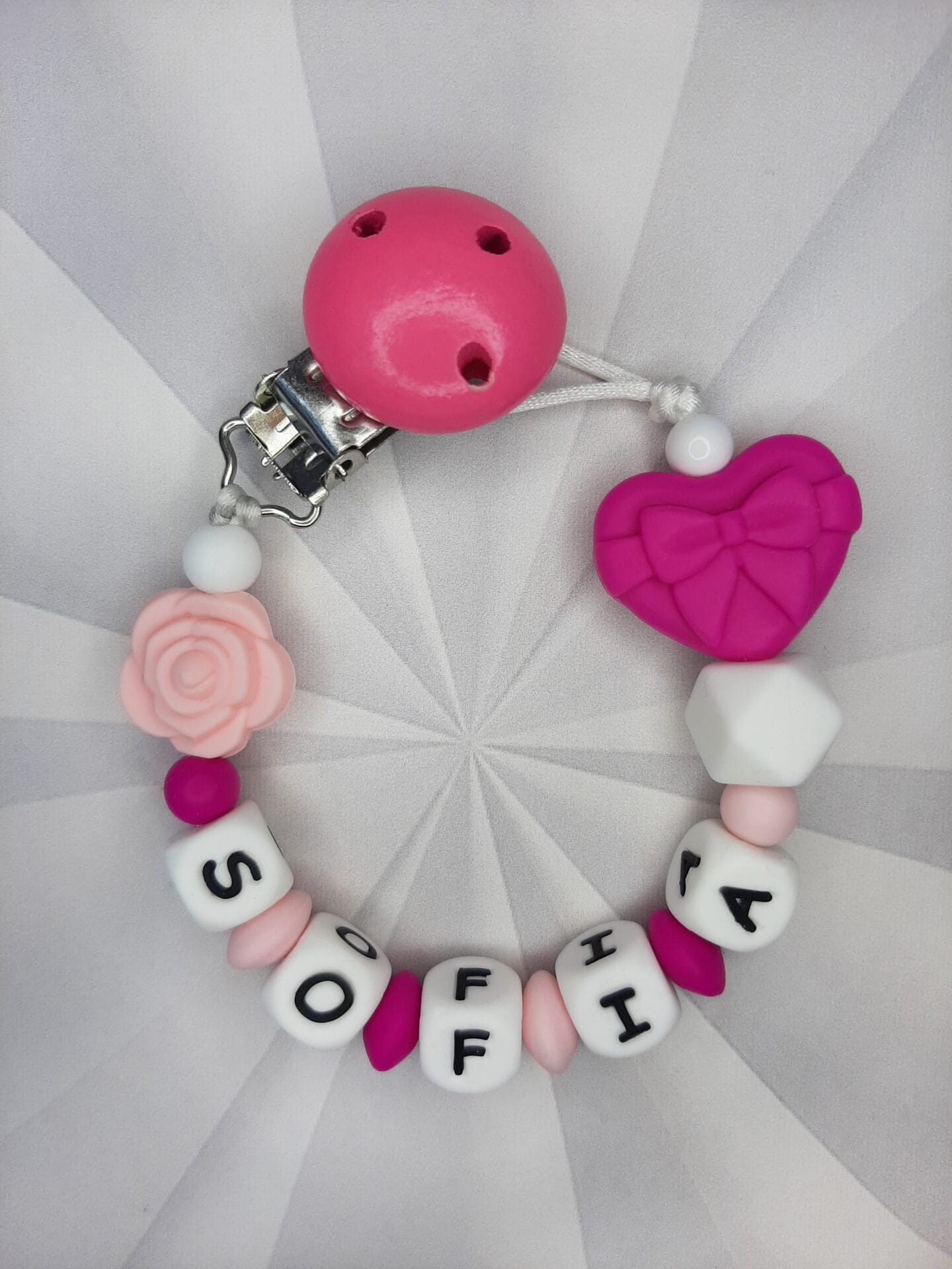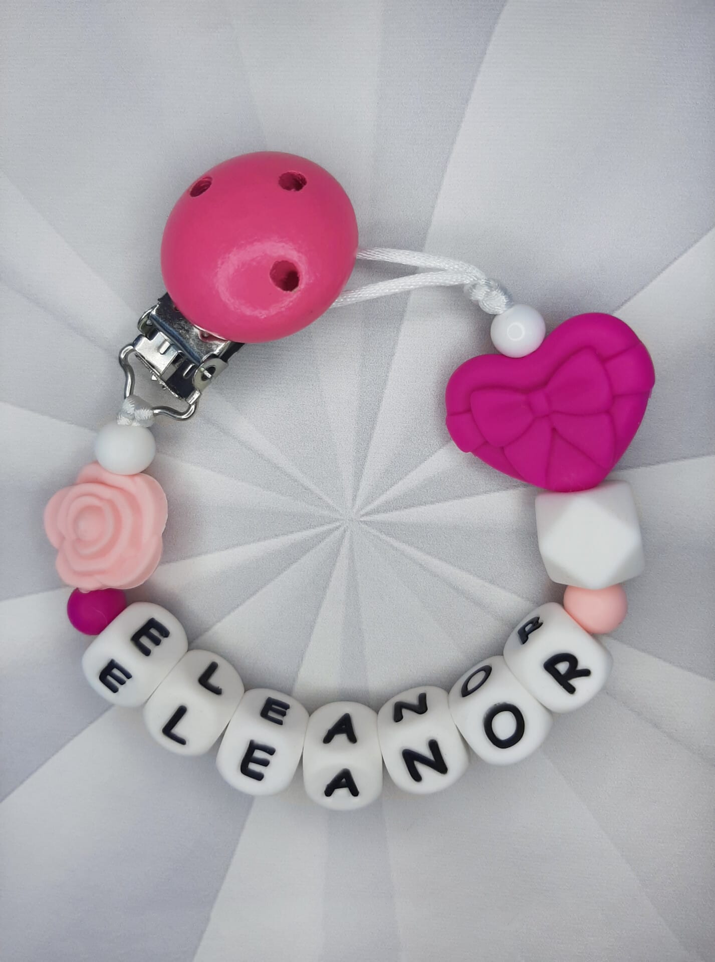 Palume arvestada, et mida pikem on lutiketile minev nimi, seda vähem ilupärleid saame lutiketi alguses ja lõpus kasutada. Vähem pärleid üldse mitte kadedusest, vaid seetõttu, et lutikett peab vastama standarditele, et olla beebile ohutu. Lutikettidele, mis sisaldavad rohkem kui 5 tähemärki, ei lisa me nimetähtede vahele tähti eraldavaid pärleid, kuna lutikett muutub muidu liiga pikaks ja lapsele ohtlikuks.