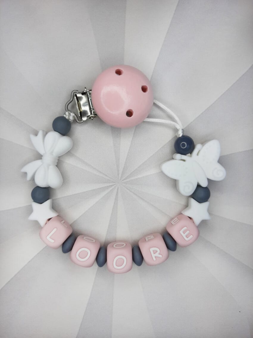 Palume arvestada, et mida pikem on lutiketile minev nimi, seda vähem ilupärleid saame lutiketi alguses ja lõpus kasutada. Vähem pärleid üldse mitte kadedusest, vaid seetõttu, et lutikett peab vastama standarditele, et olla beebile ohutu. Lutikettidele, mis sisaldavad rohkem kui 5 tähemärki, ei lisa me nimetähtede vahele tähti eraldavaid pärleid, kuna lutikett muutub muidu liiga pikaks ja lapsele ohtlikuks.
