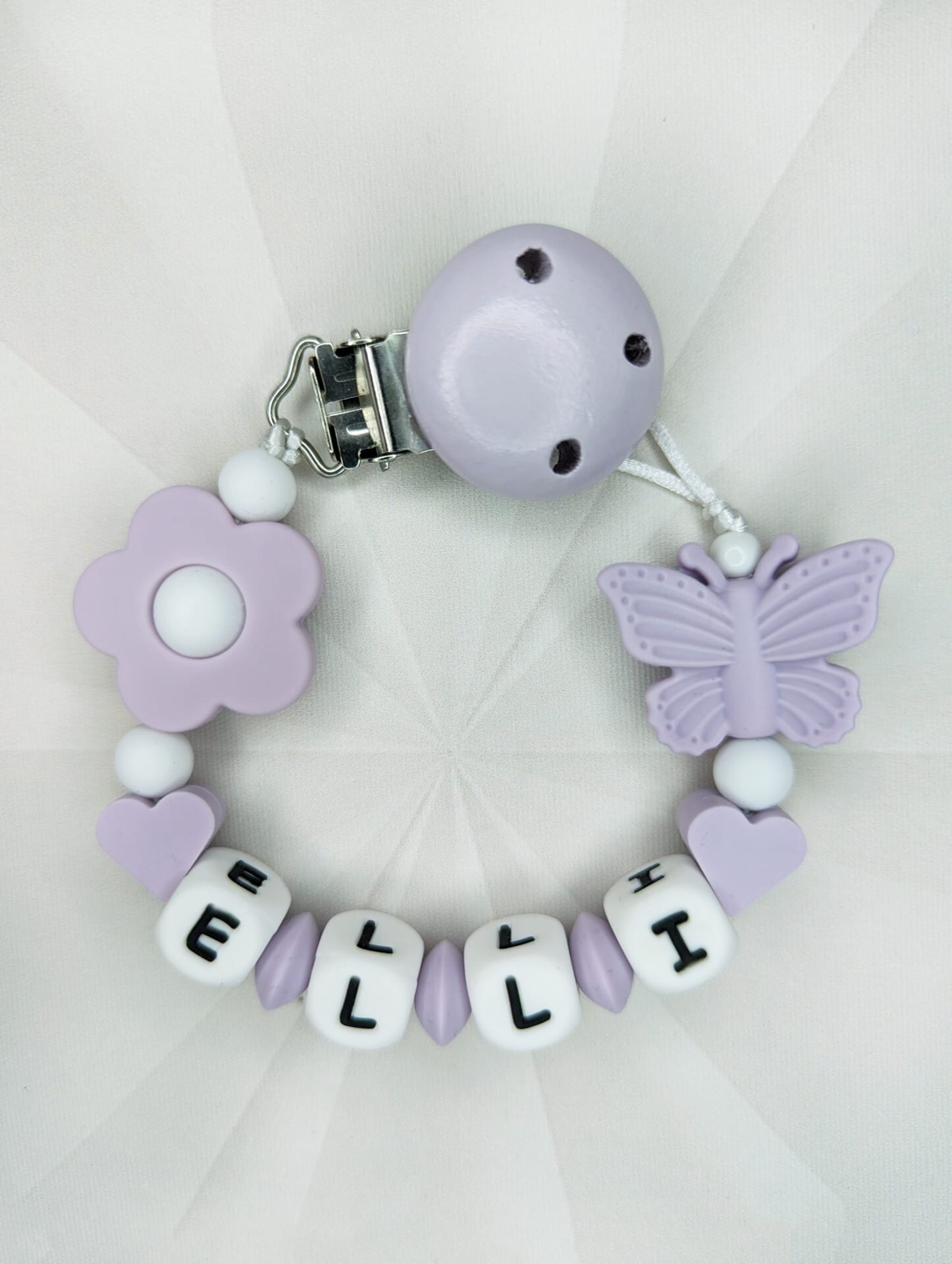 Palume arvestada, et mida pikem on lutiketile minev nimi, seda vähem ilupärleid saame lutiketi alguses ja lõpus kasutada. Vähem pärleid üldse mitte kadedusest, vaid seetõttu, et lutikett peab vastama standarditele, et olla beebile ohutu. Lutikettidele, mis sisaldavad rohkem kui 4 tähemärki, ei lisa me nimetähtede vahele tähti eraldavaid pärleid, kuna lutikett muutub muidu liiga pikaks ja lapsele ohtlikuks.