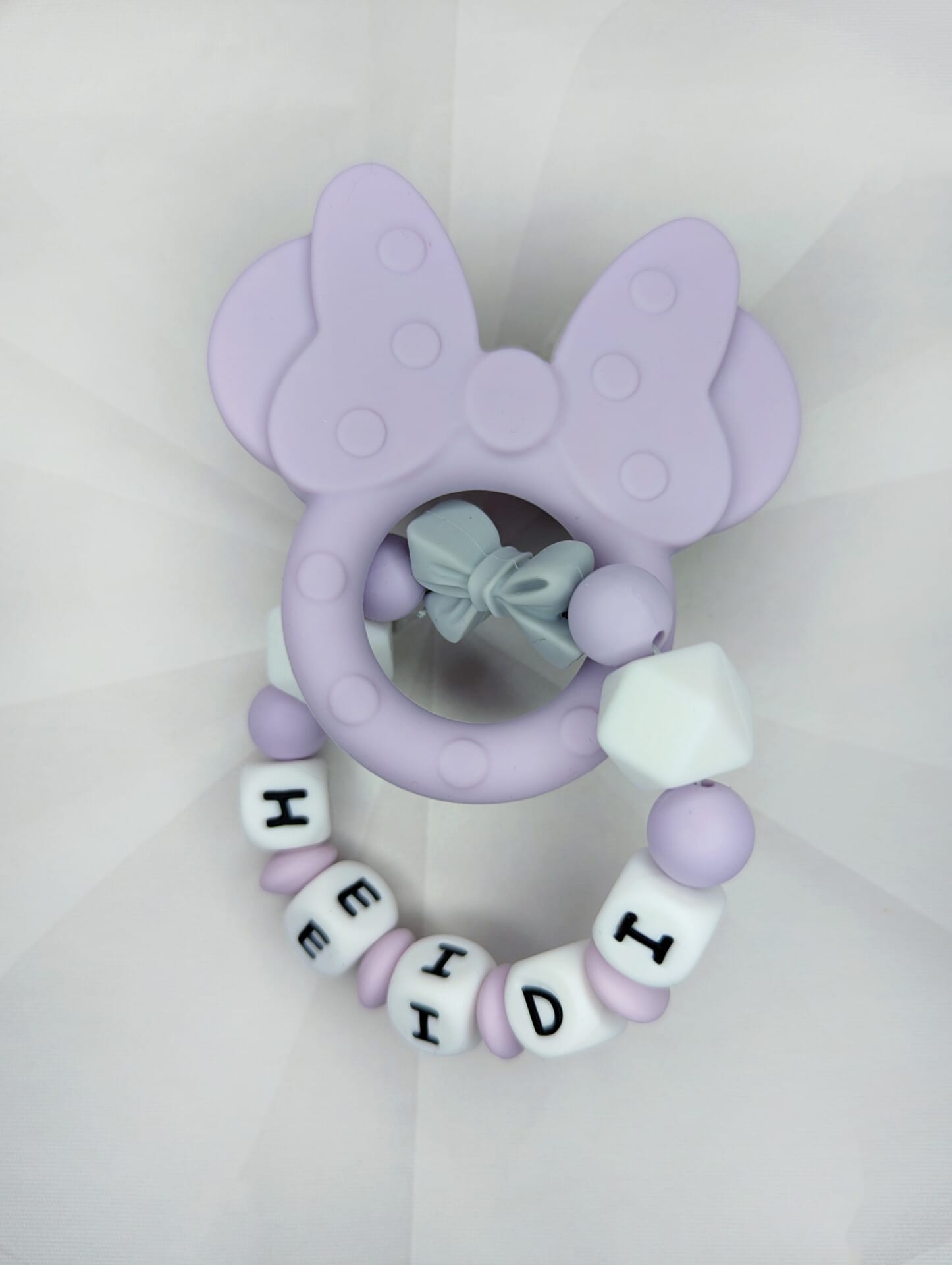 Palume arvestada, et mida pikem on lutiketile minev nimi, seda vähem ilupärleid saame närimisrõngal kasutada. Vähem pärleid üldse mitte kadedusest, vaid seetõttu, et närimisrõngas peab vastama standarditele, et olla beebile ohutu.