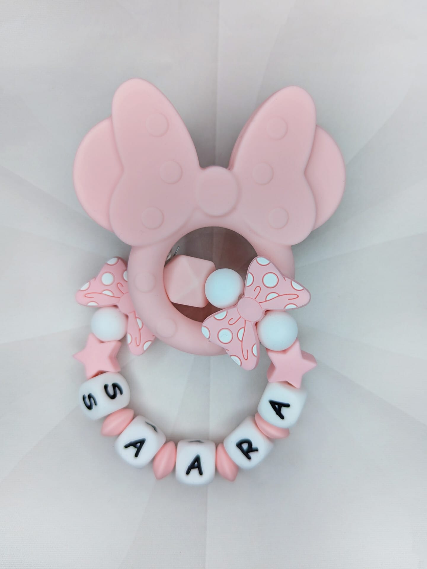 Palume arvestada, et mida pikem on lutiketile minev nimi, seda vähem ilupärleid saame närimisrõngal kasutada. Vähem pärleid üldse mitte kadedusest, vaid seetõttu, et närimisrõngas peab vastama standarditele, et olla beebile ohutu.