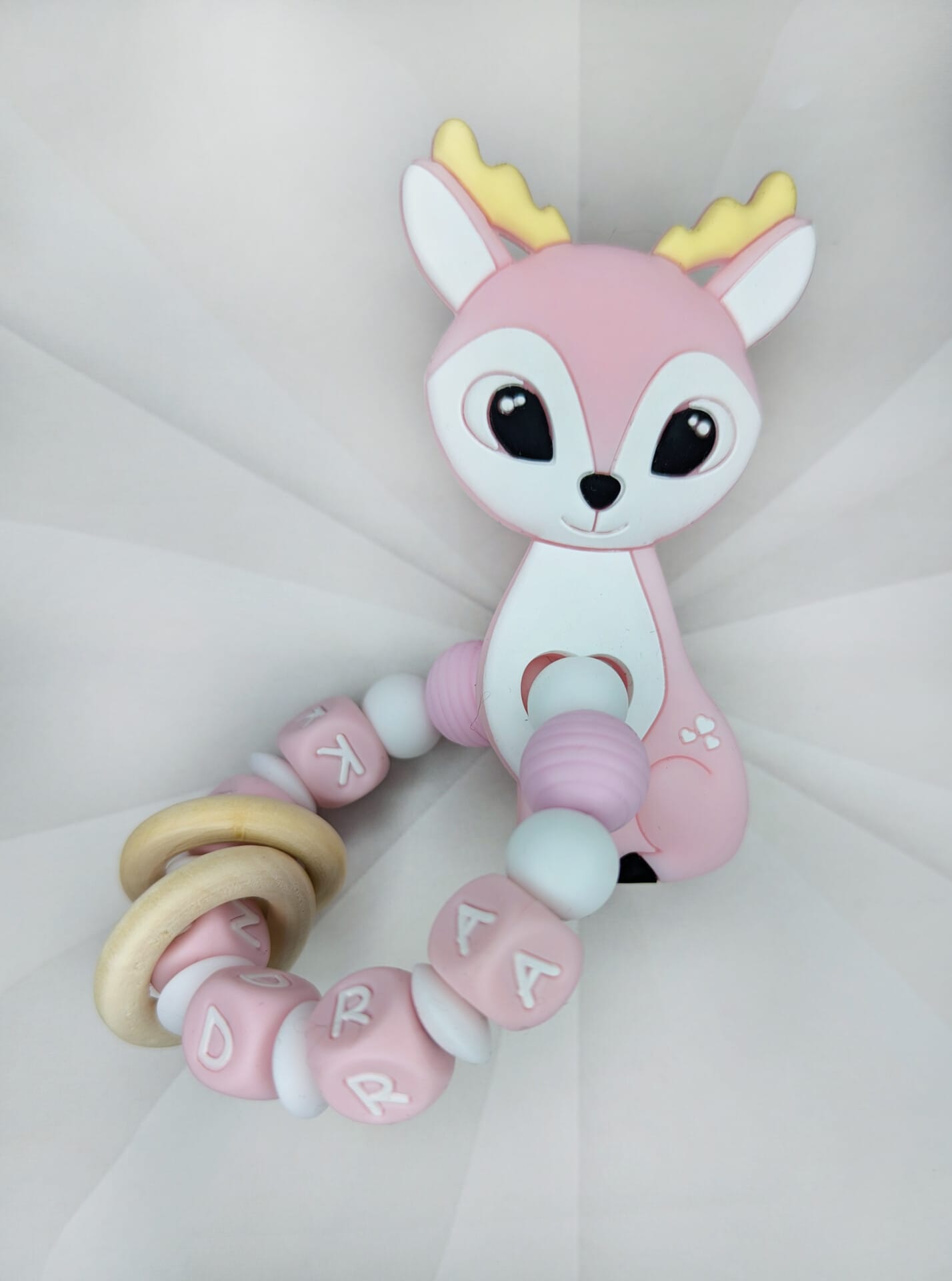 Palume arvestada, et mida pikem on lutiketile minev nimi, seda vähem ilupärleid saame närimisrõngal kasutada. Vähem pärleid üldse mitte kadedusest, vaid seetõttu, et närimisrõngas peab vastama standarditele, et olla beebile ohutu.